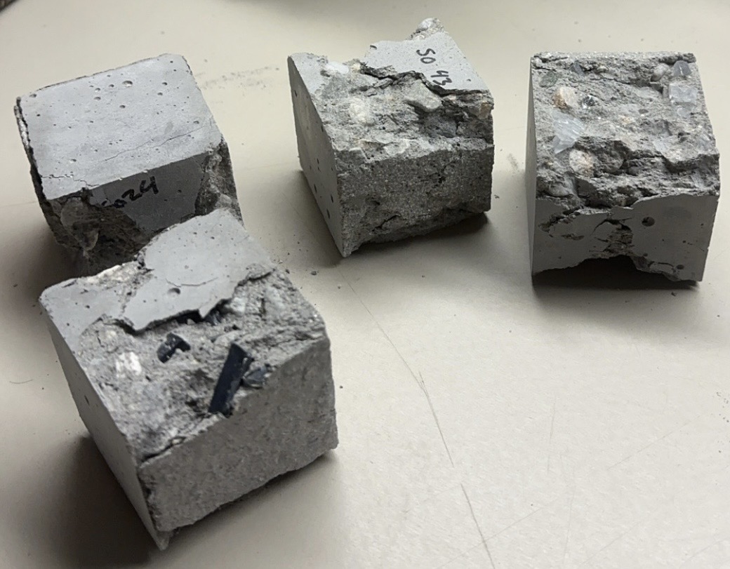 The U.S. construction industry produces vast amounts of demolition waste, including architectural float glass from building facades. Due to recycling limitations, much of this glass ends up in landfills. This research explores down-cycling architectural glass into concrete as fine aggregate, coarse aggregate, and cement substitutes. Results show improved compressive strength at 10–20% aggregate replacement, while cement substitution beyond 5% reduced strength. Sandblasting minimized visual differences across mixes, highlighting structural and sustainability benefits over aesthetic enhancement. The study supports reusing demolition glass to promote circular economy practices and develop resource-efficient, sustainable building materials for the future built environment.