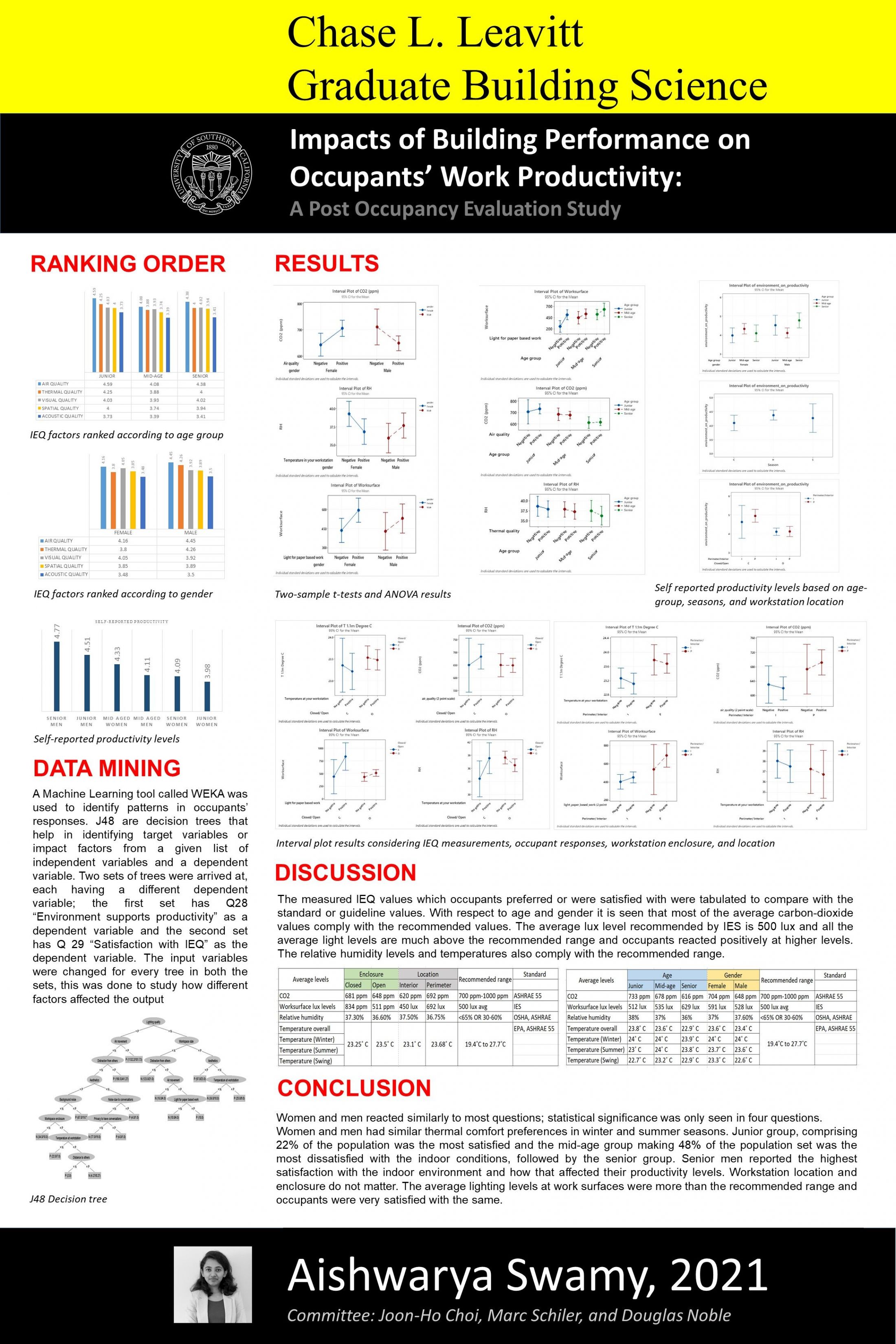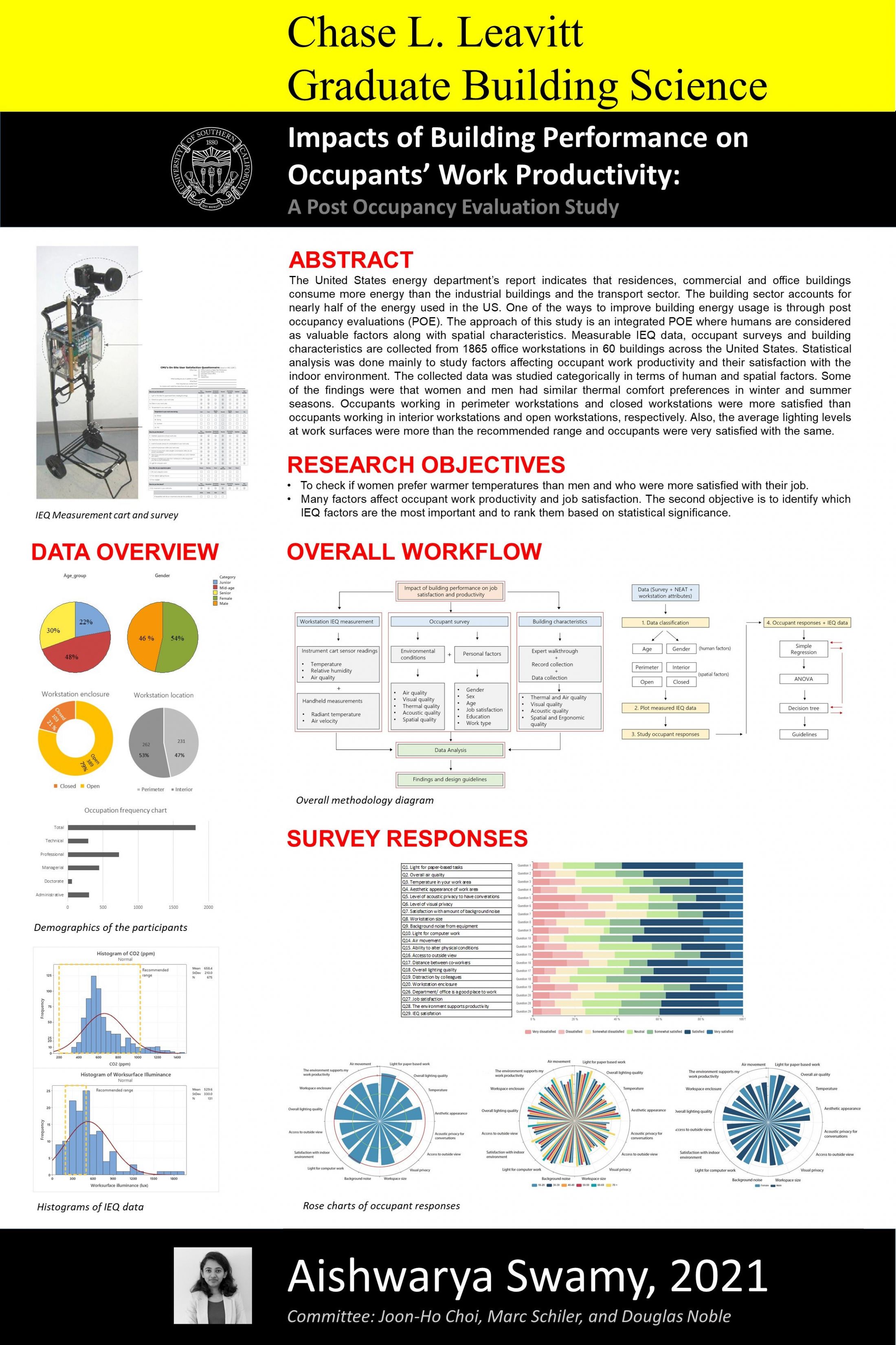 The indoor environmental conditions at 1865 workstations from over 60 modern office buildings were studied as part of an integrated Post Occupancy Evaluation study. The offices were located in research and development, public, private, and commercial buildings. Measured IEQ data and occupant responses were correlated with human factors such as age, gender, and spatial factors such as workstation location and its degree of enclosure. The study focuses on identifying the impacts of IEQ on self-reported work productivity.