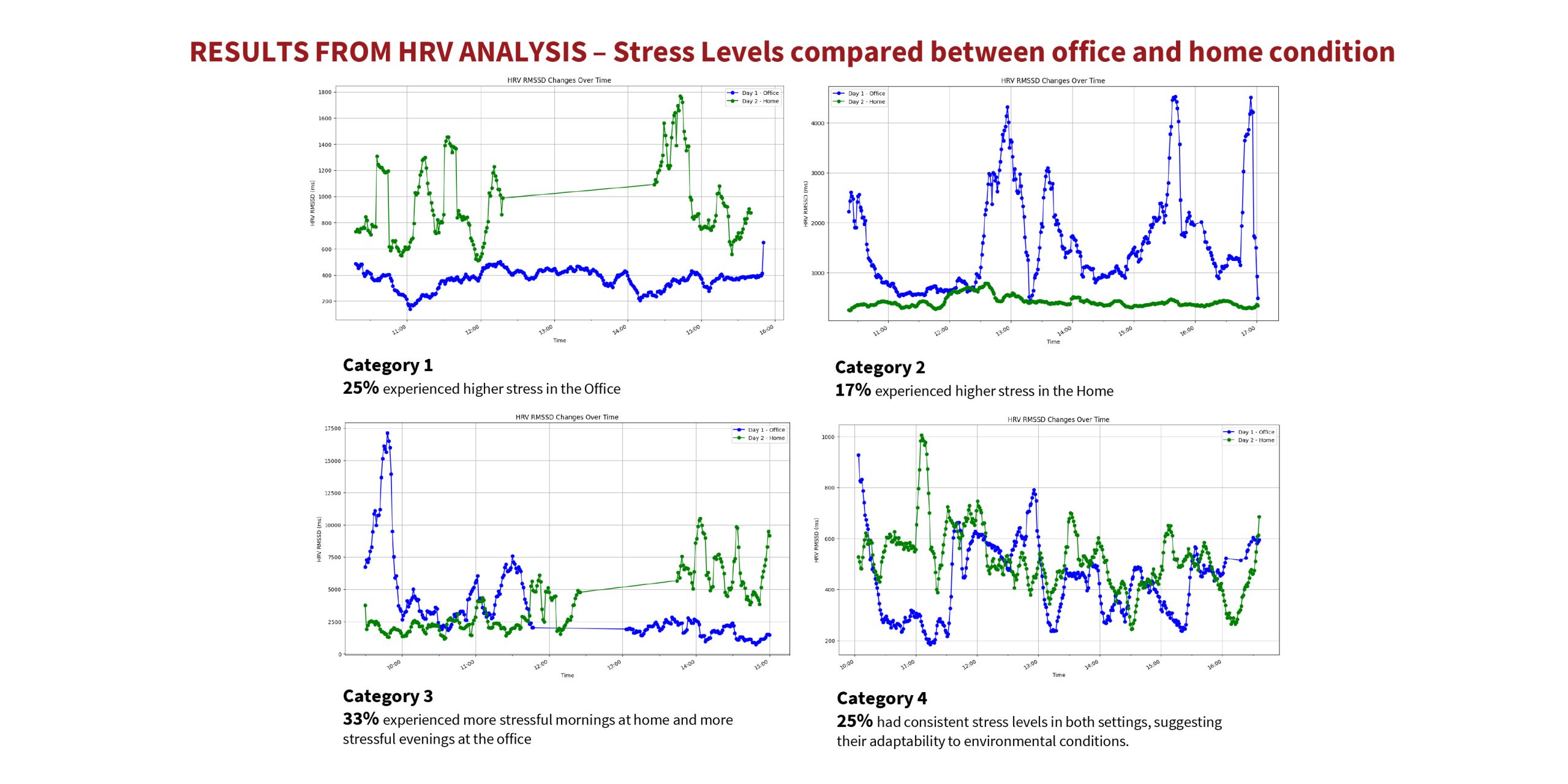 This thesis investigates the impact of Indoor Environmental Quality (IEQ) on employee well-being in hot-desking office environments using physiological data. The data were measured by wearable Heart Rate Variability (HRV) and Electrodermal Activity (EDA) sensors, as well as ambient temperature monitoring tools. It aims to assess how flexible workspaces influence stress and productivity by comparing physiological responses in home and office work settings. Results revealed that 25% of participants experienced higher stress in the office, 17% experienced higher stress at home, and 33% experienced more stressful mornings at home and more stressful evenings at the office. The remaining 25% of participants had consistent stress levels in both settings, suggesting their adaptability to environmental conditions. These results suggest that flexibility in work settings can benefit employees based on their individual conditions, and that neither setting is necessarily better for stress management and productivity.