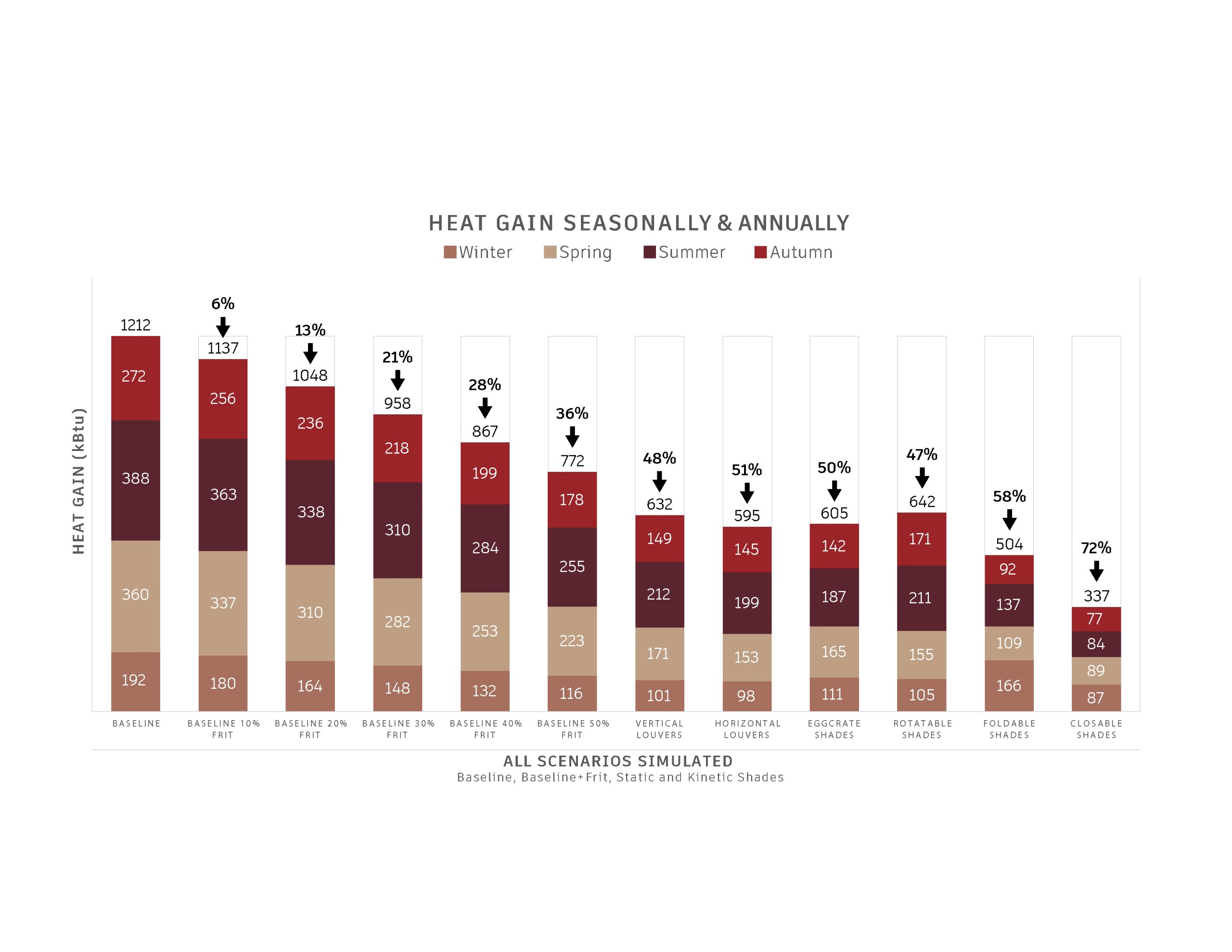 Overall, kinetic shading can reduce cooling demand by up to 30% compared to an unshaded scenario and by around 10% relative to static shading. These findings highlight the potential of dynamic façades to improve energy efficiency and comfort in highly glazed spaces.