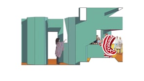 Beginning with filming a hallway, I chose to analyze changes in hard light and soft light using two dimensional and three dimensional mediums. Then I created series of fragment cube forms, using figures from my 3D analysis to create the shapes of the apertures. I arranged these forms on my site to create a space for a dressmaker to create dresses, a space for people to model the dresses, and viewing spaces for visitors to observe the dressmaking process and the models.
