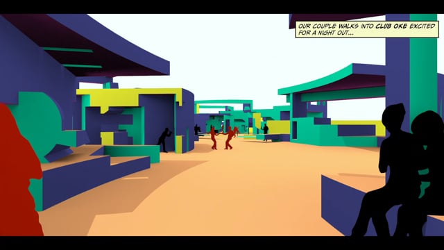 Club Oke is a karaoke club which allows for intimate singing and dancing experiences as well as as open interactions and gathering. This combination challenges the users role as audience or performer as the space both invites you to perform with others in the open for all to see, and privately dance and sing with your friends hidden from view. This project was developed using influences from an initial study on the architectural environment to inform design choices. Studying light, as well as the line vs. the curve, the project began with simple translations from video : 2D : 3D and then back, beginning to develop spatial understanding.