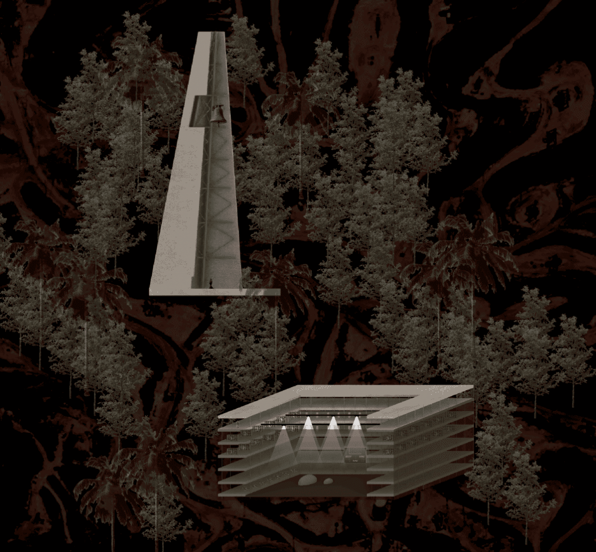 Fieldwork transforms a decommissioned oil extraction site into a campus where architecture becomes an instrument of exposure and inquiry. Ordinary building types—the house, the gas station, the office complex—are manipulated like deconstructed pumpjacks, revealing the hidden systems that power daily comfort and ambition. By dismantling and exaggerating these familiar structures, this experimentive campus becomes a symbolic setting for education: a site of spatial revelation where students engage with the architectures—material and ideological—that sustain daily life, as one draws dark oil from beneath the surface of our society.