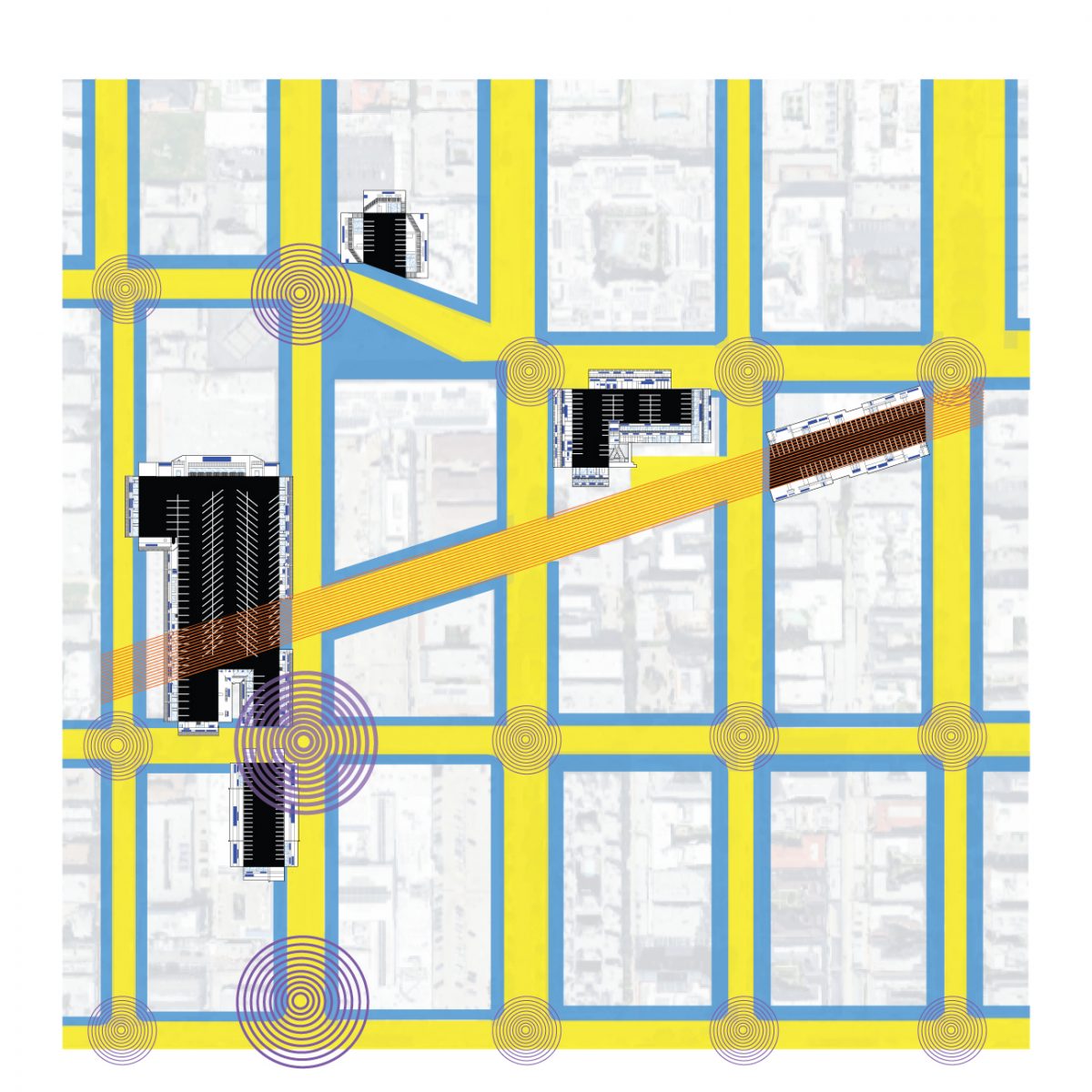 This project leverages the neutralization of strip malls in order to optimize their expressive and social potential. It repositions the parking lot, typically seen as an accessory, as the central spatial and social catalyst of the strip mall. By exploiting the seemingly bland quality of strip malls—disrupting its generic condition through acts of preserving, recoding, and importing existing elements—this project reconfigures the strip mall as an active and adaptable environment. As urban environments evolve towards more pedestrian-focused spaces and automated transportation, this project demonstrates how such spaces can be transformed to reflect the needs of a more social, human-centric city.